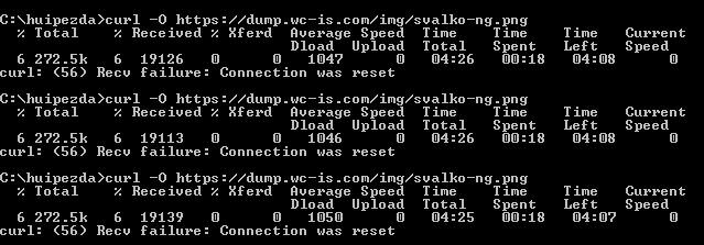 А с transformice (там не CF, а OVH) у мя вообще ёбань какая-то. Пару часов назад не грузился вообще. Попробовал глагну - а она весит несколько кб и загрузилась влёт! Открыл в браузере - и правда html стал грузиться, только картинок нет. Взял картинку для теста - ага, загрузилось около 16 кБ, висит. Провисело минут семь. Оборвал, очистил окно, решил сделать красиво несколько попыток с таймаутом - а оно херакс и по нулям уже, не грузится вообще...